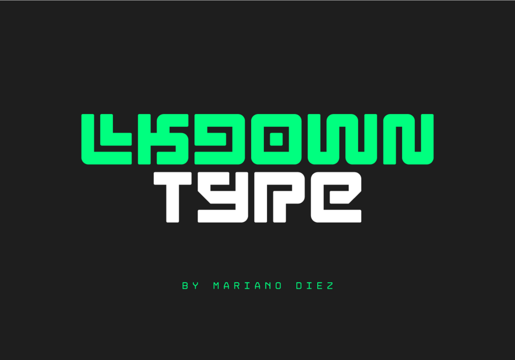 Lkdown is a strong display typeface inspired by coronavirus lockdown and entirely designed during the confinement in april 2020 by Mariano Diez. Its experimental and retro-futuristic shapes fit perfectly with every piece that needs a personality boost. Suitable for headings, posters, cover artworks and more.